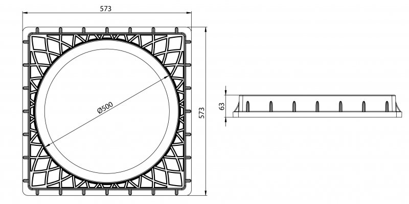 Teknik Çizim Ölçüleri Çerçeve Genişlik : 573mm Yükseklik : 63mm Daire içi kapak : 500mm ölçülere sahiptir. Teknik çizim açıklama kısmında resmini inceleyebilirsiniz.
