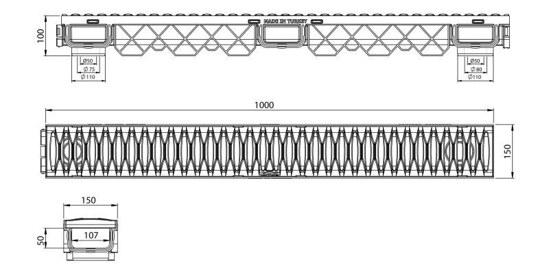 150x100x1000 mm Plastik Izgaralı Drenaj Kanalı