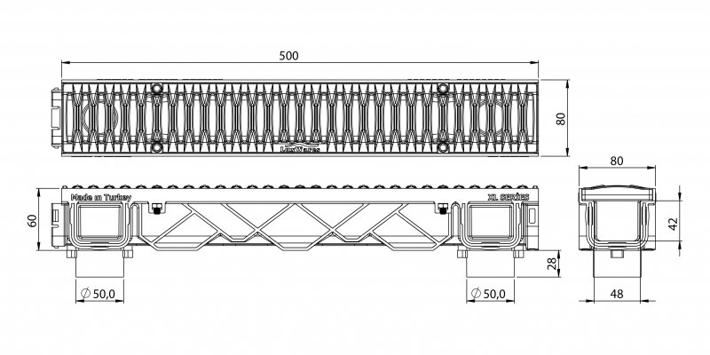 Luxwares marka; 80x65x500 mm Plastik Izgaralı Drenaj Kanalı | 8×6,5×50 cm Yağmur Suyu, Yüzey ve Havuz Kenarı Drenaj Kanalı fiyatı ve açıklaması